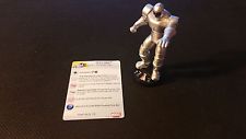 AAOU025 Machine Man — 120 Points — Uncommon: More of a novelty attacker than anything else, Machine Man is a close combatant without Charge or a very high Damage Value. His Trait (Extendable Body Parts: When Machine Man makes a close combat attack, squares within a range of 3 and line of fire are considered adjacent.) somewhat mitigates the first problem, and Super Strength will help with the second.