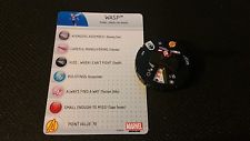 AAOU005 Wasp — 70 Points — Common: So this is actually Janet, not Hank Pym. She does sport the ever popular Lady Liberators keyword to go with her expected Avengers and Celebrity keywords. No Traits, she obviously is a Flyer, and she of course has the “Tiny” Symbol. She starts with (not pictured) an 8 Movement (with Running Shot), 10 Attack Value (with Incapoopitate), 17 native Defense (with Super Senses) and 2 Damage with a Special Power (Founding Member: Wasp can use Shape Change. When she does, she may increase the result by 1 for each adjacent friendly character with a shared keyword (a roll of 1 still fails).).