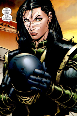 So I love that Echo has has Super Senses and Traited Combat Reflexes and that in addition to those two powers she can copy a power, like, say, Shape Change, from someone on your team or even an opposing figure. Sure she can copy any Attack or Damage power (even Telekinesis, which is weird for that character), but copying Shape Change gives her a third defensive ability which is just awesome for a character under 100 points. Plus, unlike another recent, cheap defensive powerhouse (JLTW034 Element Woman), she actually has a decent offense. 11 attack (with her own Perplex) and Blades/Claws/Fangs.