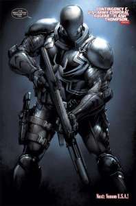 2. F4055E Agent Venom (50 or 75 points) – Whether you run this guy at 50 or 75 points really depends on the rest of your team. Both are good options. From the moment he was previewed players have been going nuts over his trait, “CALL IN HELP FROM… ME!: Once per turn, when another friendly character that shares a keyword with Agent Venom hits, after resolutions you may roll a d6. 3-6: Place Agent Venom adjacent to a hit opposing character.” Add to that the usual Symbiote tricks (Plasticity, Shape Change) and his ability to grant shape change to others at 75 points or his Perplex/BCF combo at 50 points.