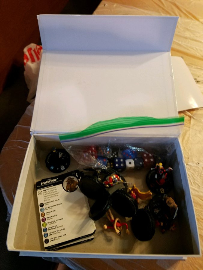 After seeing all that it got me thinking about what I use to carry around my heroclix and if I could add a custom touch to that. Currently I have a box inside my backpack I use to carry around 1-3 armies at a time. This us what it looks like:
