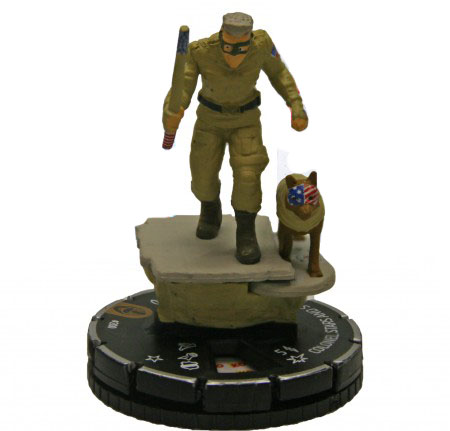 9. Colonel Stars and Stripes (#200) 100 Points (Marquee–Kick-Ass 2 CTD): This set kind of came and went quickly without making much impact at my local venue, but there are some interesting pieces here, none more so than Colonel Stars and Stripes. He has Traited Duo Attack with his dog Eisenhower, and he can be given a power action to release his dog as a Bystander token, which he can then give a free move action to each turn (provided the pup is still within 4 squares of his master). Add in Running Shot, Charge and Flurry at various points in his dial, and you have a nifty lil’ fig here. Pieces like this are what get me excited about “lesser sets” like movie sets—this isn’t a power piece per say, but he looks like he’s a lot of fun to play and he’s totally different from most of the Modern Age pieces we have right now (Squirrel Girl is probably his closest comp, but she plays a slightly different role—and is less points, too. Oh, and I think she’s either out of Modern Age or about to be rotated out this year…). You couldn’t actually PLAY him in a Modern Age game, but he’d be a lot of fun to mess around with at your local venue or in an Indy-themed tournament. Plus, given how he responded to the promotion of this movie, this is almost definitely the first and last time Jim Carrey will be Clix’d.