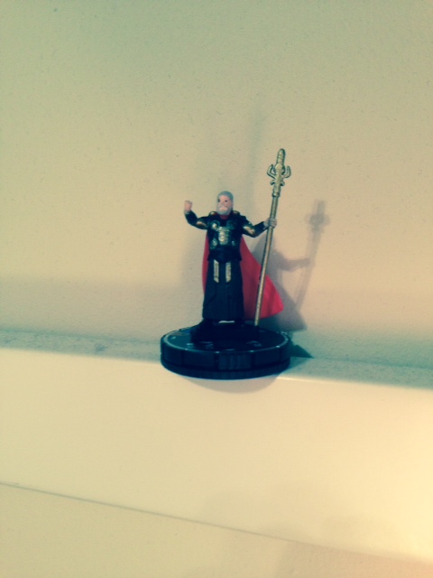 In particular, it was the Gravity Feed set that came out in Targets across the country in the summer of 2012 that inspired me to get back into Clix. I bought two little packs and pulled a movie-Cap and the Chase Loki. I hadn’t played Heroclix since the days of Secret Invasion, but I was hooked again as soon as I saw that lil’ plastic Tom Hiddleston! He’s a boatload of points, but man, with Mystics, Power Cosmic AND every copyable enemy TA, he is a rough day for your opponent before the match even begins! (As he should be. He almost singlehandedly took down the stars of, like, 2 billion dollars worth of blockbusters.)